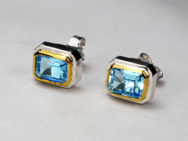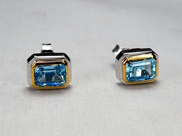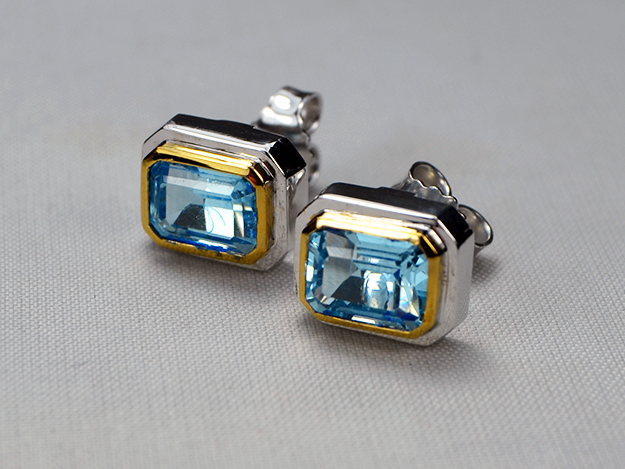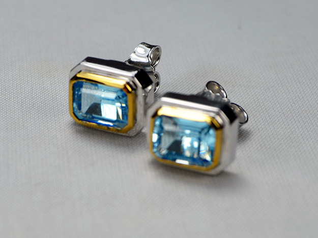 Achteckige, facettierte Topase in 585/000 Weißgoldfassung, zum Teil feingoldplattiert.