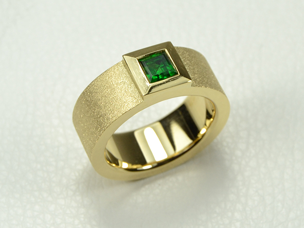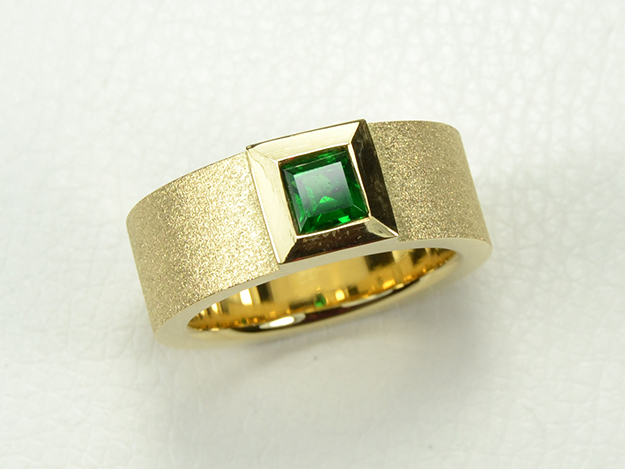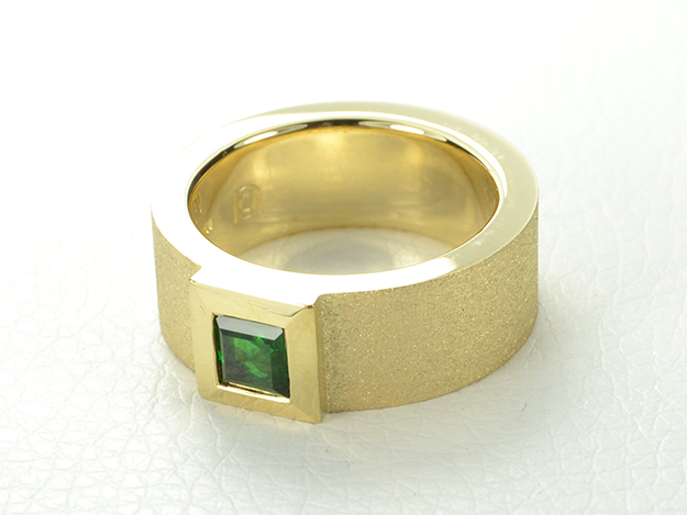 Breiter Gelbgoldring mit Tsavolith-Carré, grüner Granat.