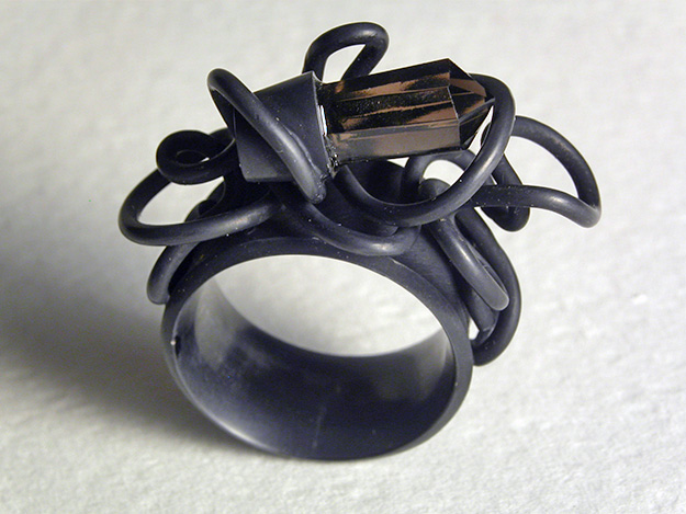 Silberring, schwarz verchromt. mit Rauchquarzpampel.