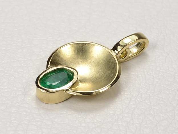 Aufgetiefter Teller mit Zargenfassung für facettierten Smaragd.