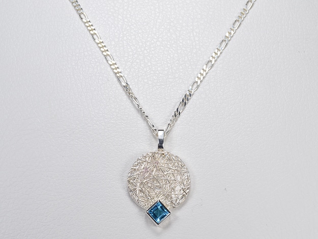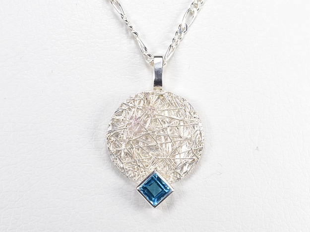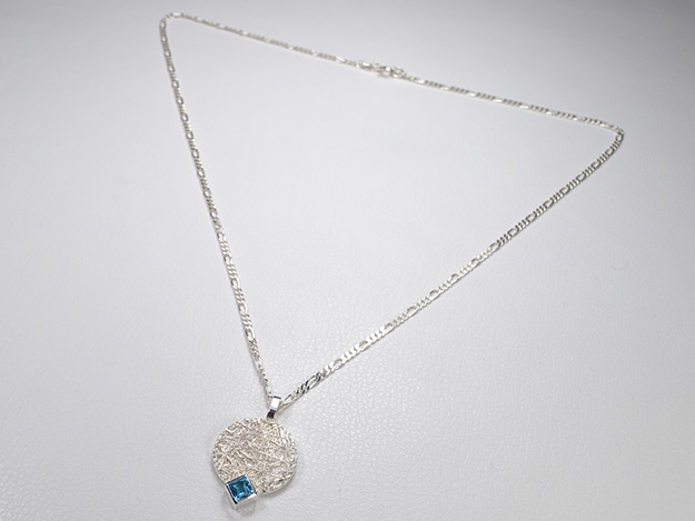 925/000 silberner Anhänger, belötet mit Fasermatte in 925/000 Silber, unten Fassung für ein Topas-Carré. Figarokette ebenfalls in 925/000 Silber.