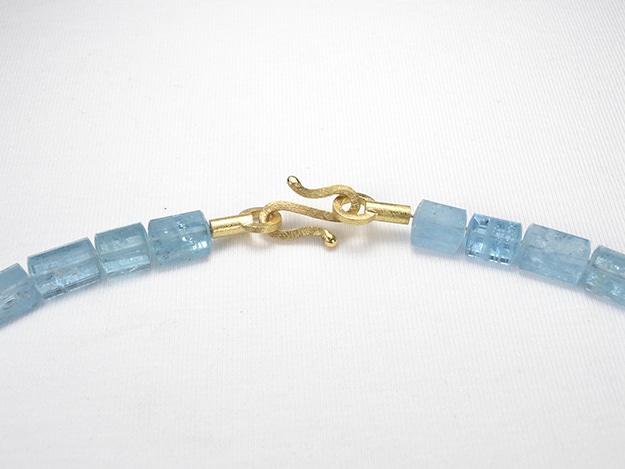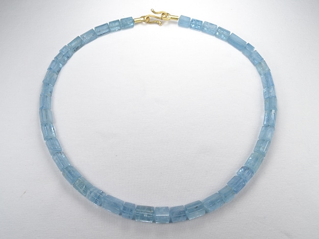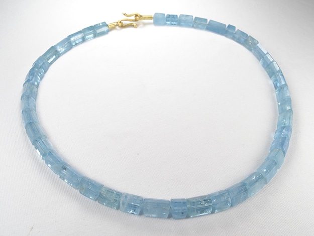 Aquamarin-Triangelkette auf Größenverlauf, mit 750/000 Gelbgoldschließe.