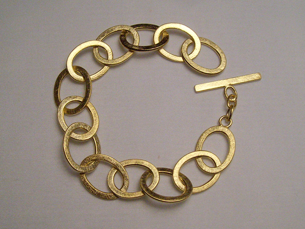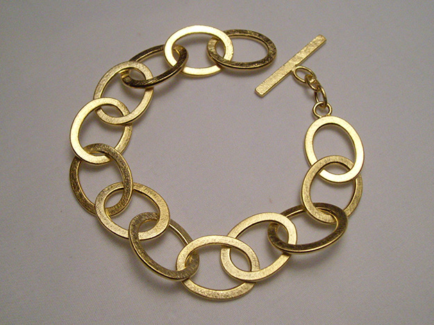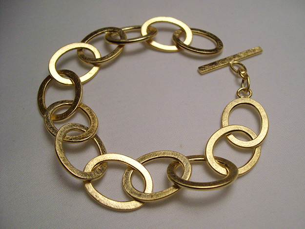 Armband aus handgeschmiedeten Ösen in 925/000 Silber, feingoldplattiert mit Knebelverschluss.