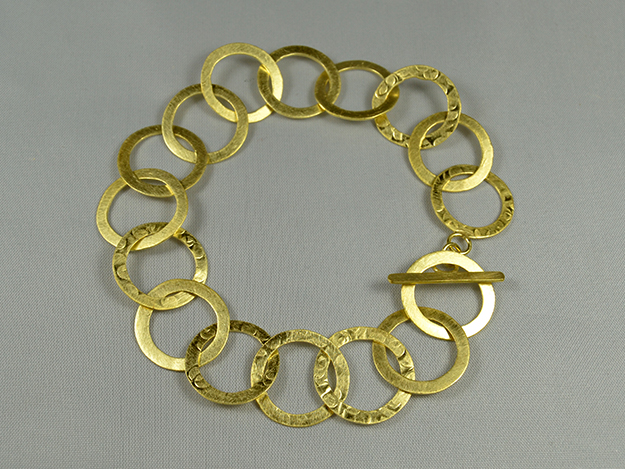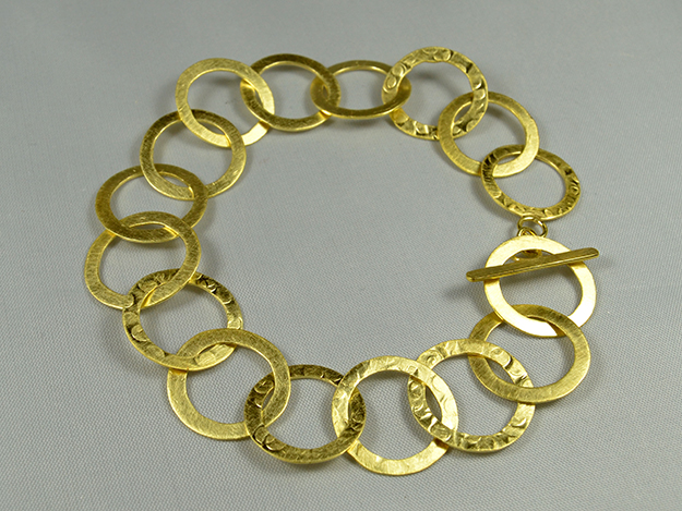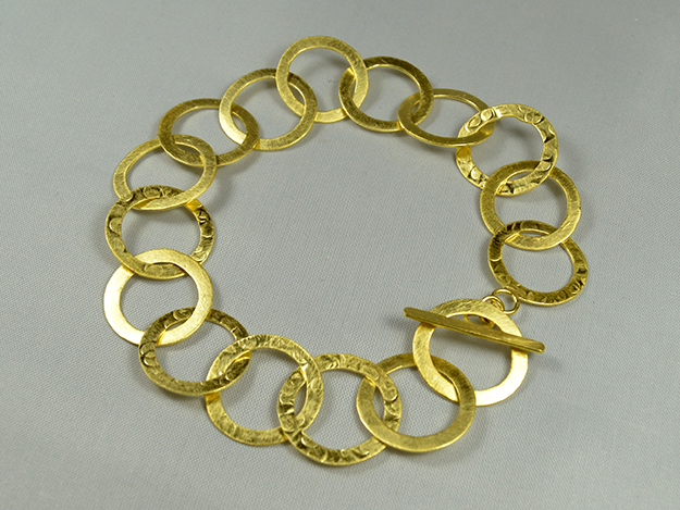 Armband aus handgeschmiedeten Ösen in 925/000 Silber, feingoldplattiert, mit Knebelverschluss.