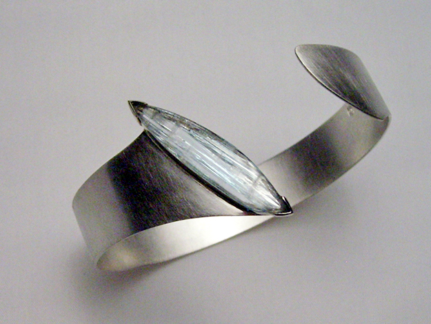 Armspange in 925/000 Silber, Öffnung seitlich, mit Aquamarin in Phantasieschliff.