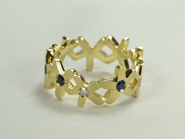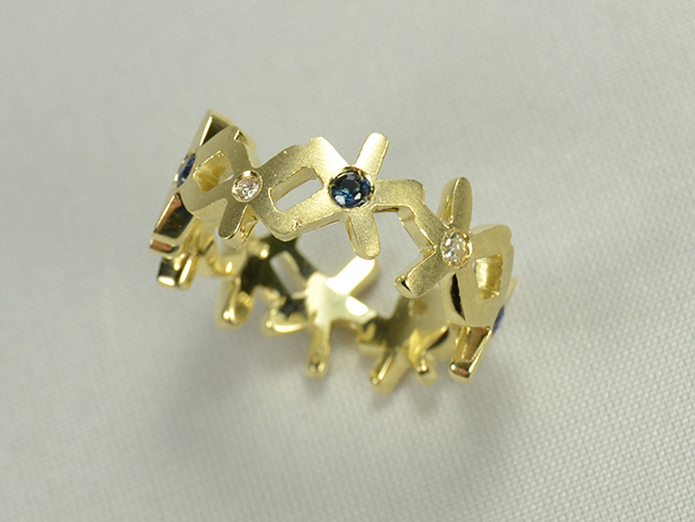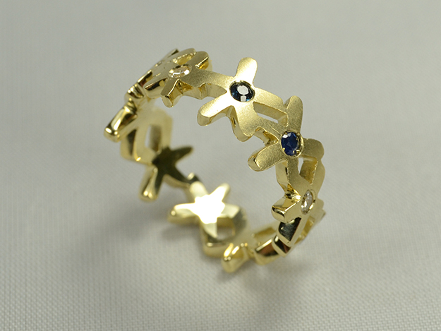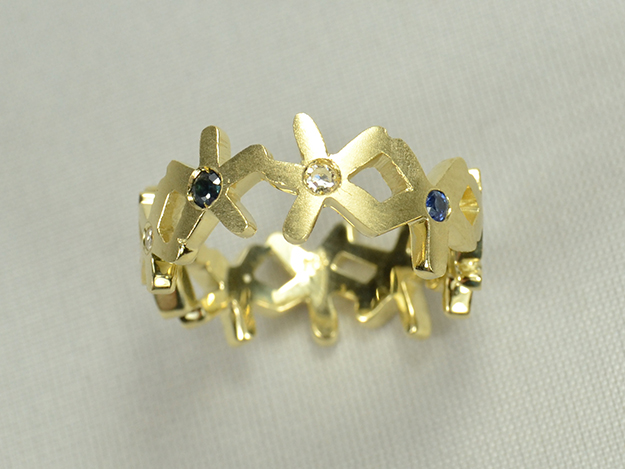 Blume an Blume in Gelbgold mit Brillanten und Saphiren.