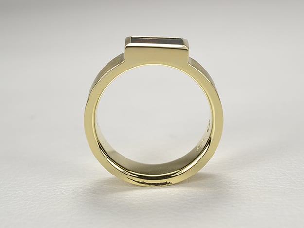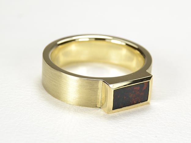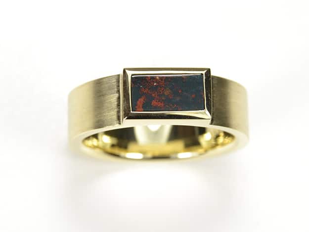 Herrenring in 585/000 Gelbgold. Geerbter Heliotrop neu eingeschliffen in die rechteckige Zargenfassung.
