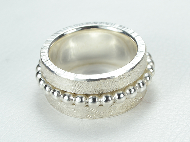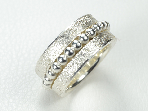 Breiter, überschmolzener Ring mit drehbarem Perldrahtring in der Mitte.
