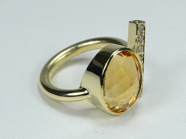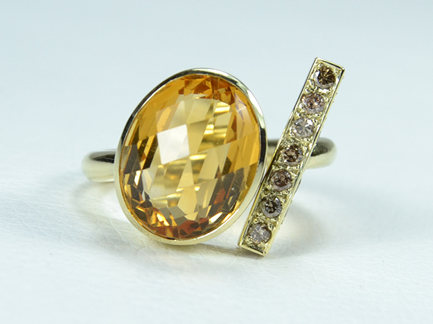 Ring in Gelbgold mit einem Citrin und cognacfarbenen Brillanten