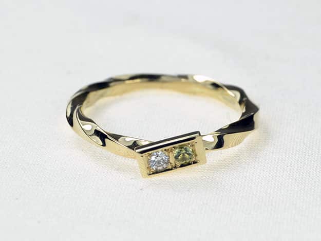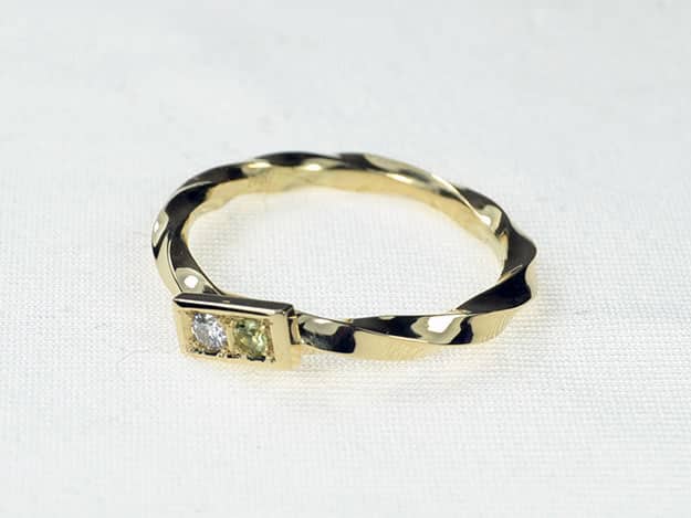 Gedrehter Ring Gelbgold mit Brillant und Peridot