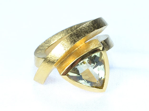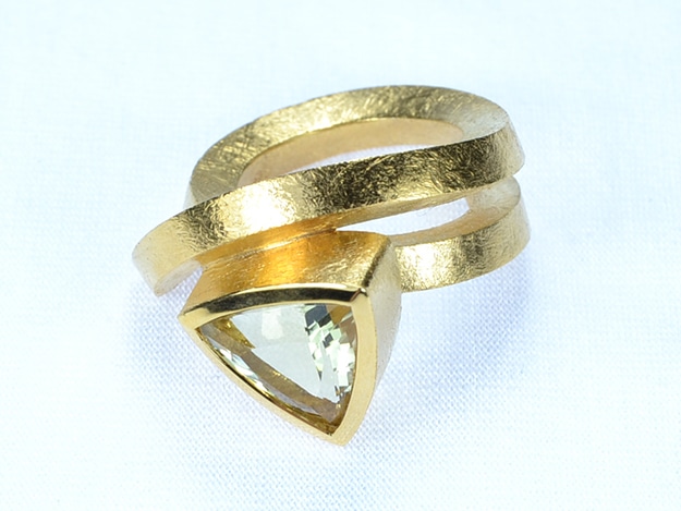 Gedrehter Ring groß, Silber, goldplattiert mit Lemon-Citrin