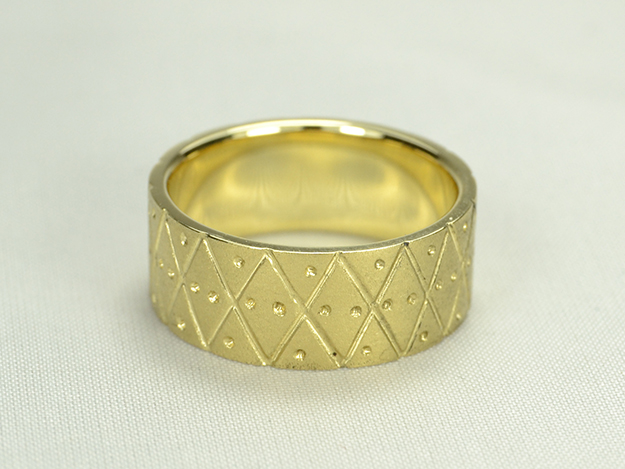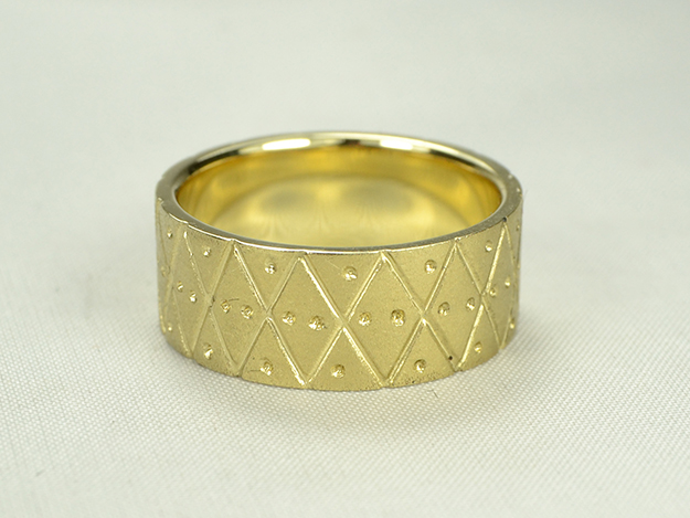 Gelbgoldring mit eingefrästem Muster.
