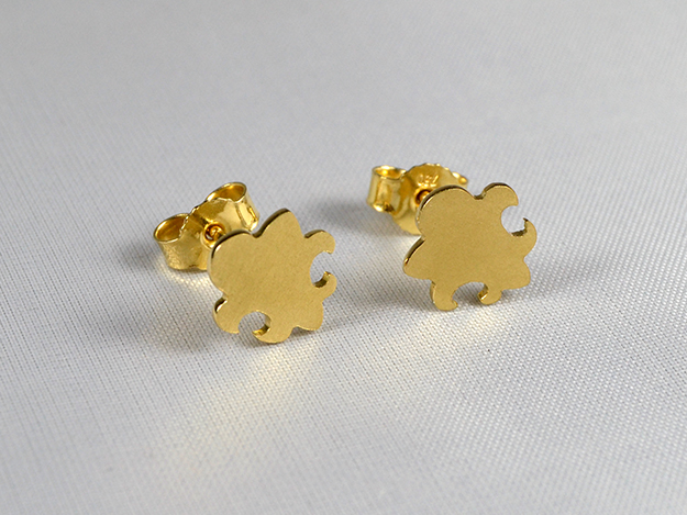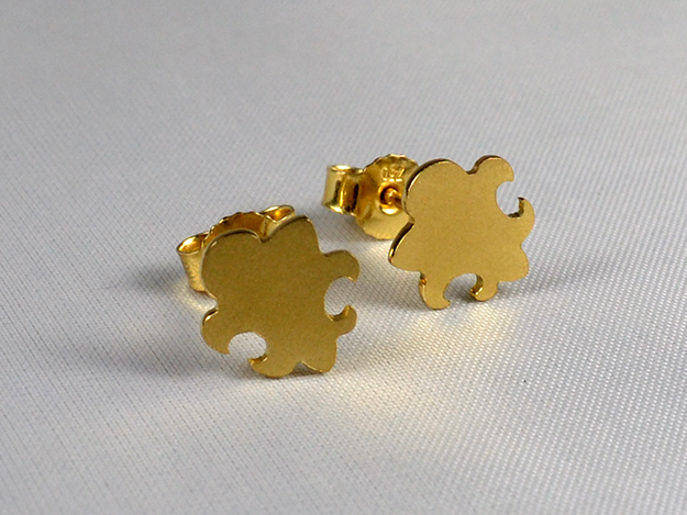 750/000 Gelbgold-Stecker mit ausgesägtem Muster, ca. 13mm Durchmesser.