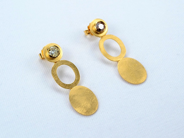 Geschmiedete Ohrhänger in 585/000 Gelbgold mit Brillant