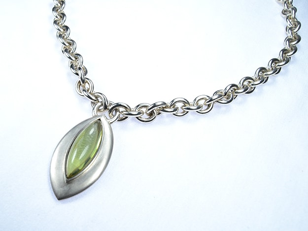 Kette Silber mit Anhänger mit grünem Bernstein, behandelt
