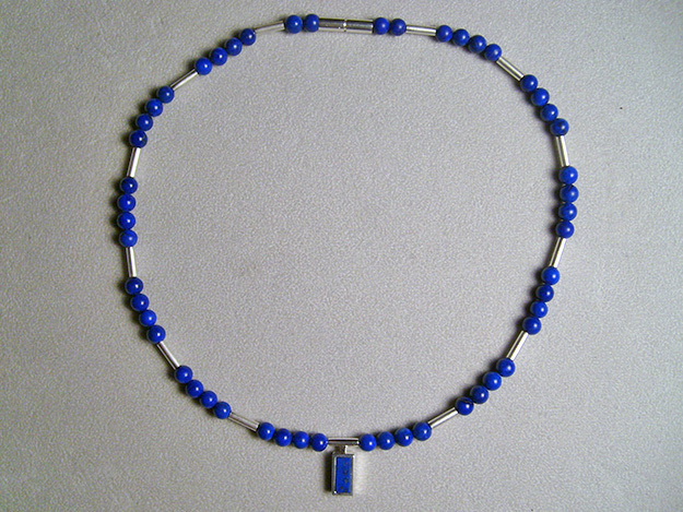 Lapis Lazuli Kugeln mit kleinem Anhänger. Zwischenteile und Schließe in Silber.