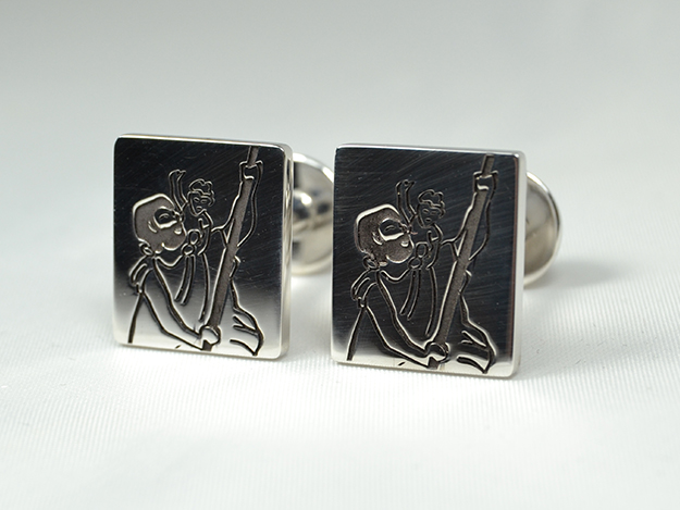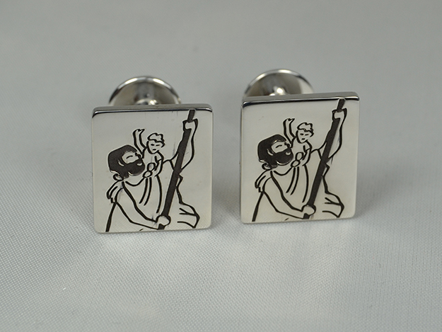 Manschettenknöpfe in 925/000 Silber, rhodiniert mit lasergravierten Christopherus.