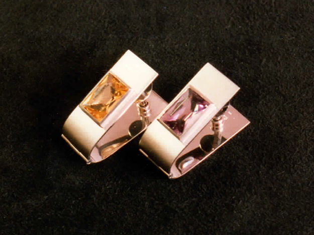 Manschettenknöpfe in 585/000 Weißgold mit Kundensteinen, Citrin und Amethyst.