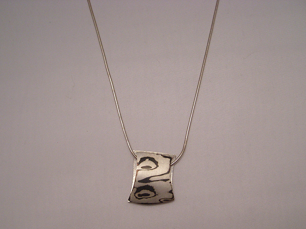 Anhänger in Silber und Mokume Gane Silber/Kupfer an Silberkette.