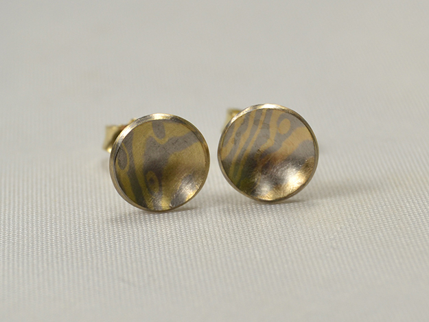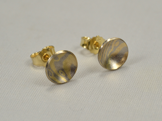 Mokume Gane Ohrstecker, Gelbgold/Palladium