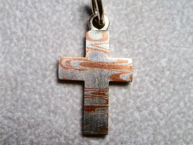Mokume Gane Silber/Kupfer, kleines Kreuz.