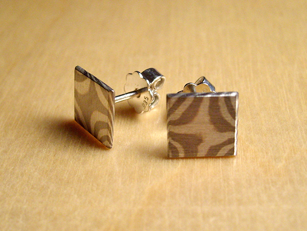 Plättchen in Mokume Gane 500/000 Palladium und 935/000 Silber.