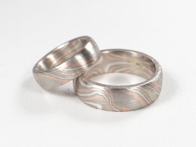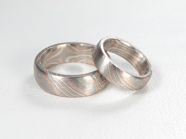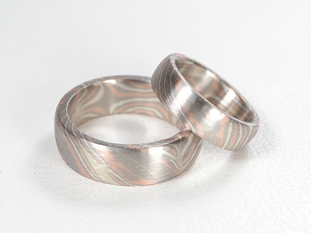 Mokume Gane Trauringe Palladium Rotgold Silber