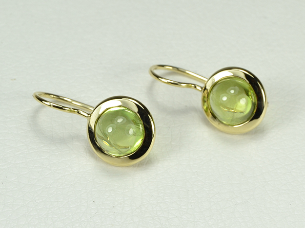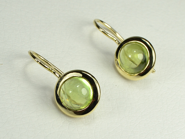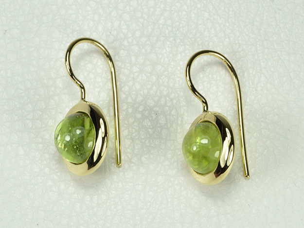 Peridot Cabochon mit breiter Fassung und Schweizer Haken, Länge 25mm.