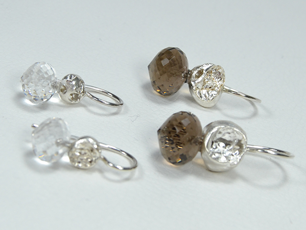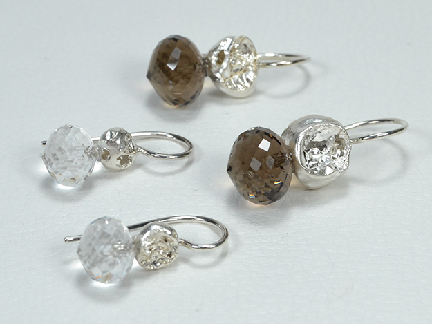 Feinsilbergranalien mit facettiertem Bergkristall/Rauchquarz in Zwiebelform.