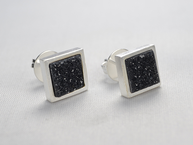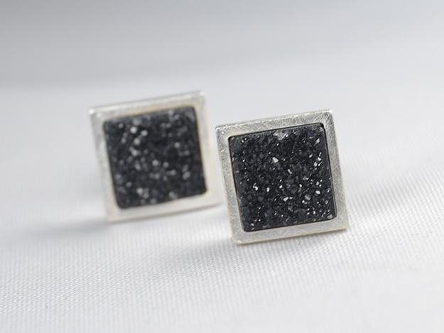 Kristallisierter Onix in 925/000 Silberfassung. ca. 12x12mm.