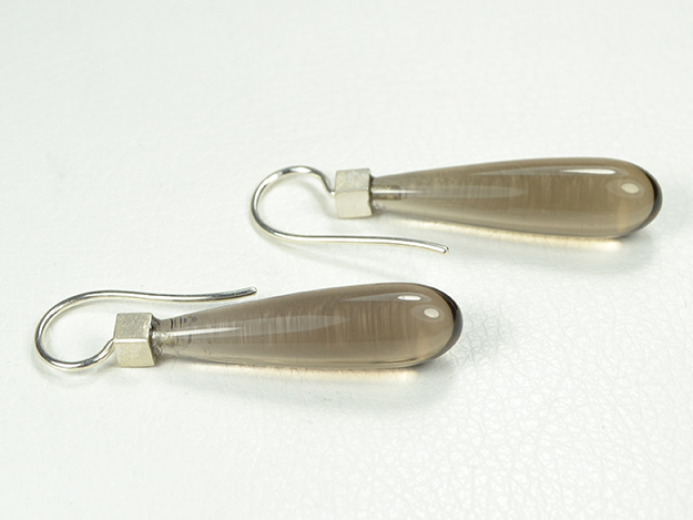 Verschiedene Pampeln, Rauchquarz, glatt; Prehnit facettiert, Süßwasserzuchtperle. 925/000 Silber, zum Teil feingoldplattiert.