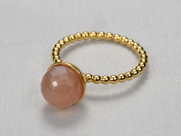 Perldrahtring in Silber, feingoldplattiert mit facettierter Mondsteinkugel, Durchmesser 7mm.