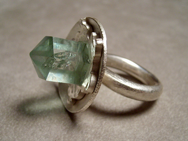 Ring Silber, rhodiniert mit Prasiolith im Sonderschliff
