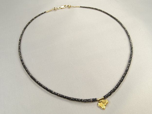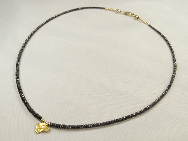 Rheingoldanhänger Gelbgold in Rohdiamantkette