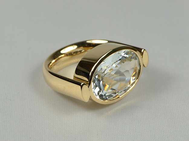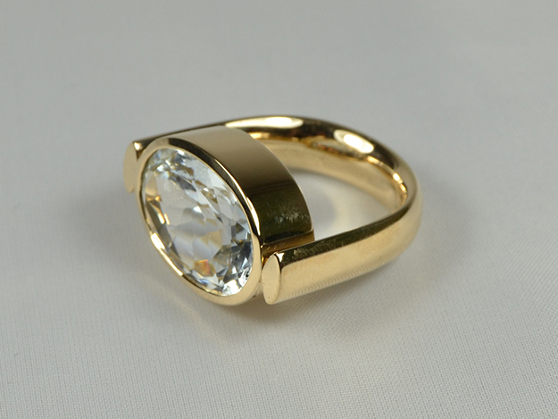 U-förmiger Ring mit hoher Zargenfassung für Aquamarin aus kundeneigenen Beständen.