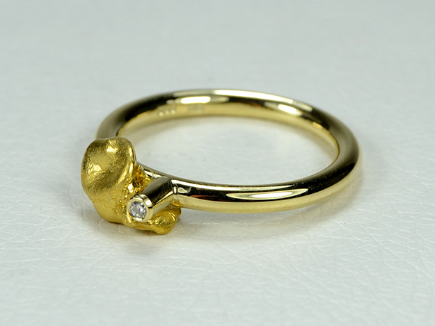 Eine Rheingoldgranalie 922/000-927/000, auf einer 585/000 Gelbgold-Runddrahtschiene mit kleinem Brillant.