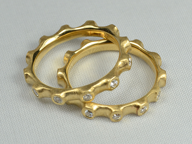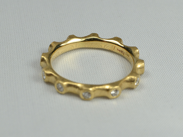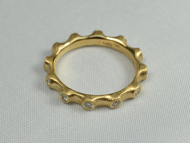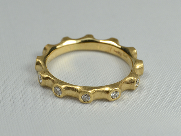 Schmaler Ring mit 12 gefeilten Zargenfassungen für 12 Brillanten.