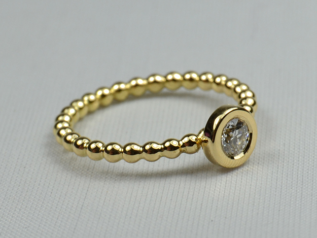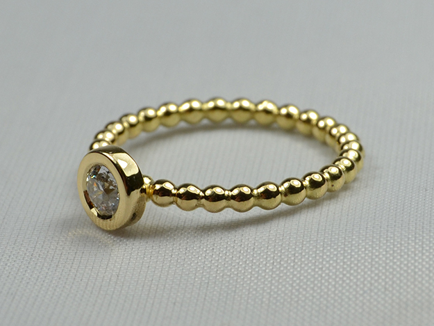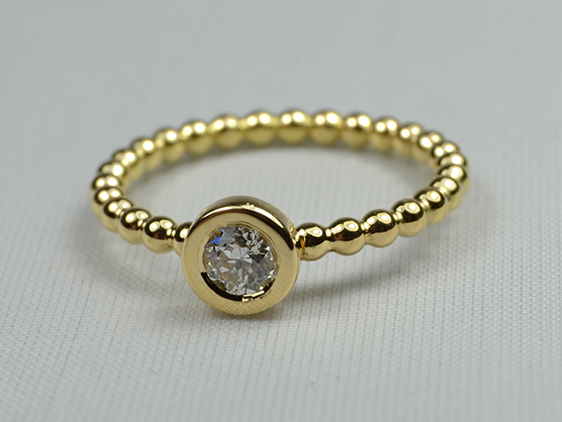 Perldrahtring in 750/000 Gelbgold mit Brillant. Kombiniert mit anderen Ringen tragbar oder auch allein.