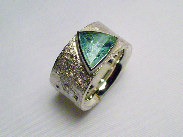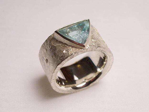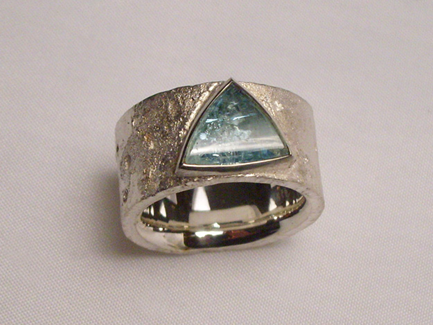 Breiter, überschmolzener Silberring mit dreieckigem Aquamarin.