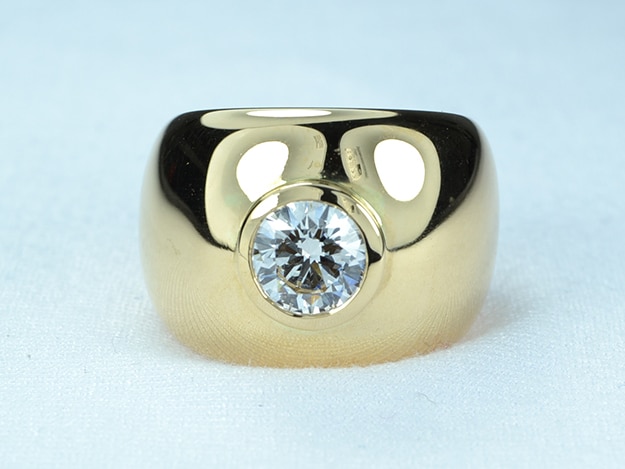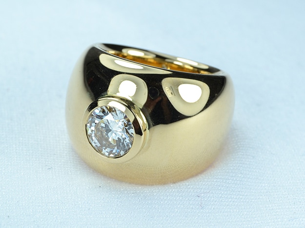 Ring mit hoher Fassung Brillant labgrown, 750er Gelbgold