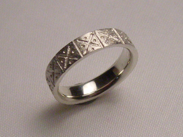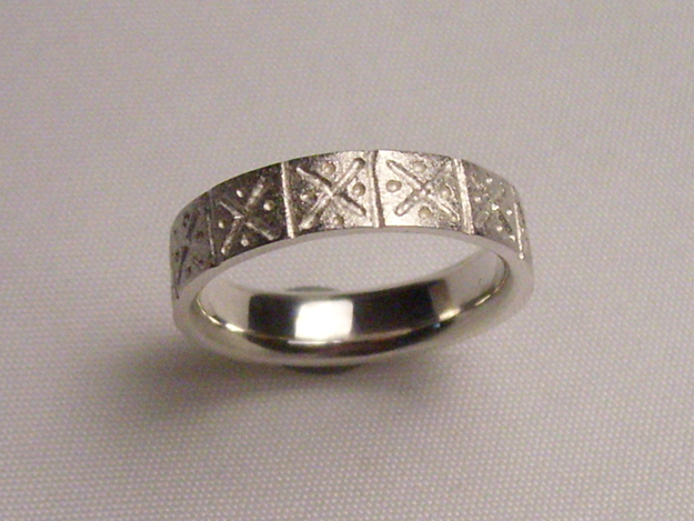 Silberring mit von Hand gefrästem Muster.