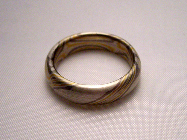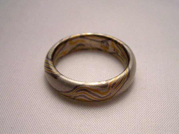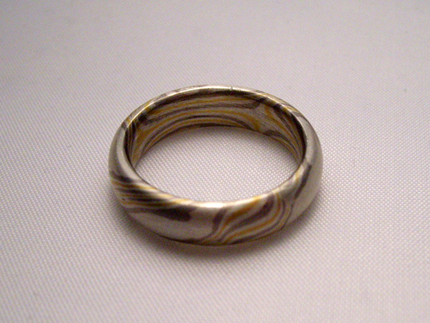 Mokume Gane Ring in 935/000 Silber, 950/000Palldium und 917/000 Gelbgold.