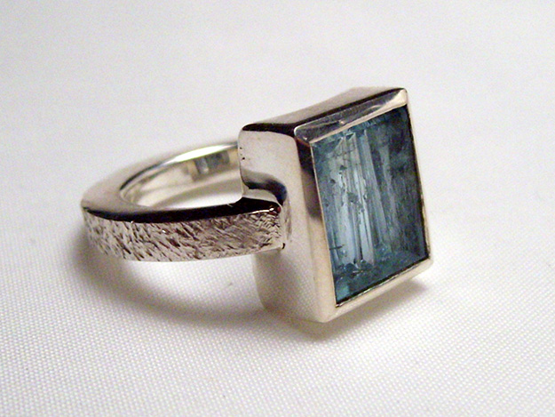 Silberring mit Aquamarin-Phantasie-Sonderschliff.