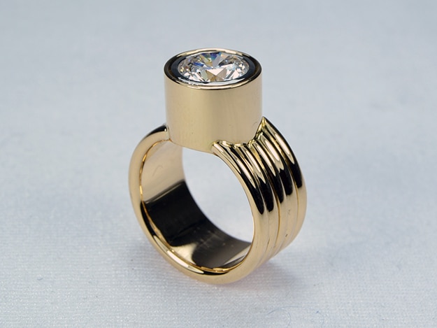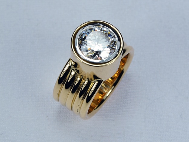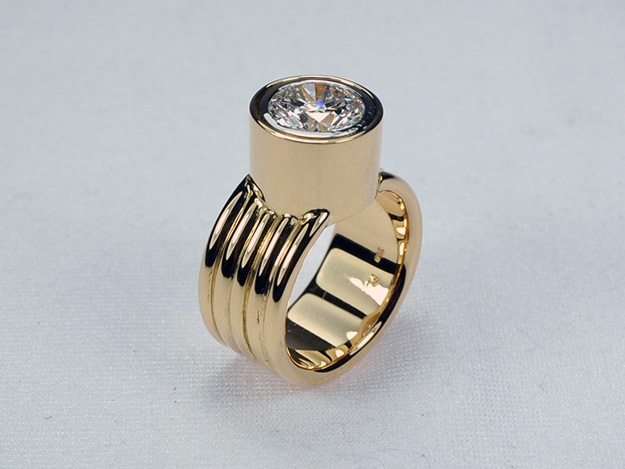Ring mit hoher Fassung Brillant labgrown, 750er Gelbgold