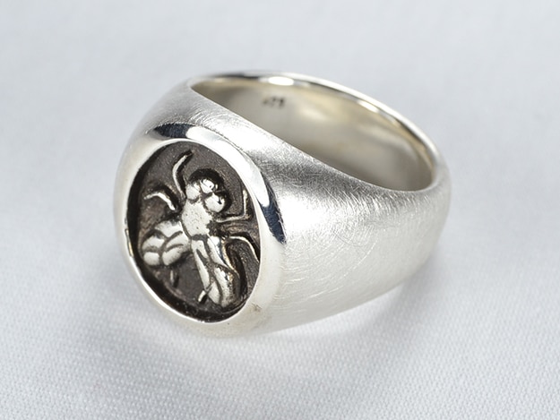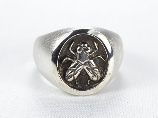 Ring in Form eines Siegelringes, statt graviertem Wappenstein, habe ich eine Fliege im Relief modelliert.