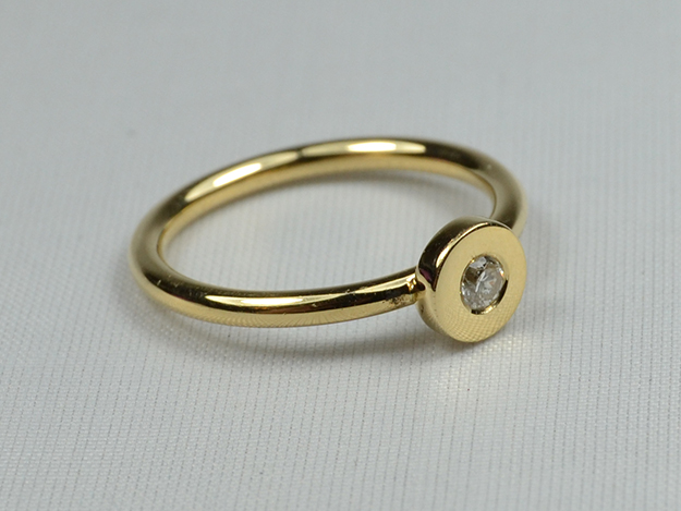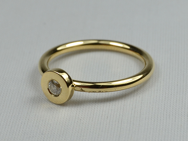 Rundrahtring in 750/000 Gelbgold mit Brillant, mit mehreren anderen kombinierbar oder allein tragbar.