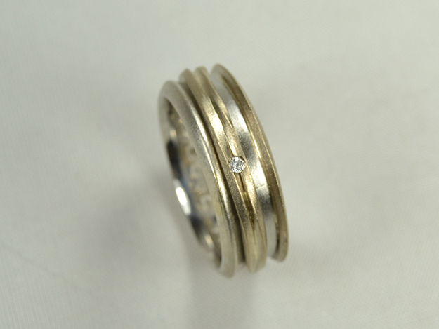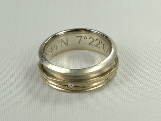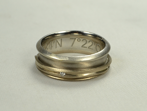 Trauringumarbeitung verdrehbar, mit einem weißen und schwarzen Diamant