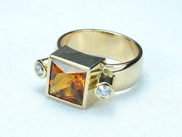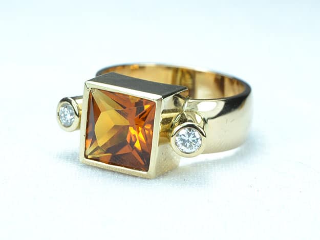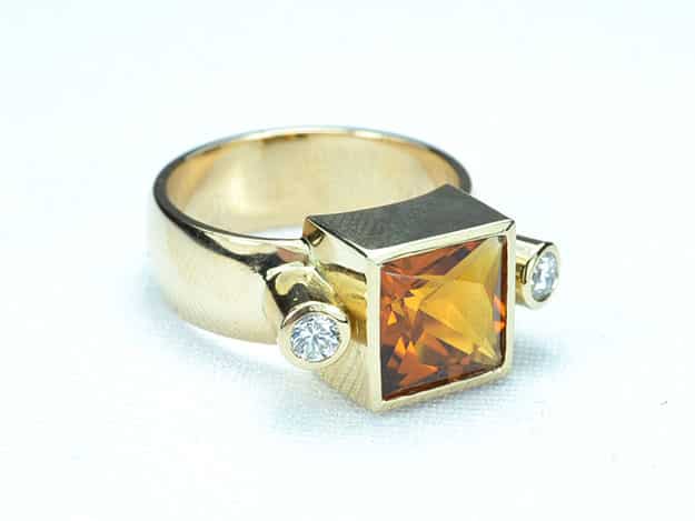 Ringumarbeitung mit Citrin und Brillanten, labgrown