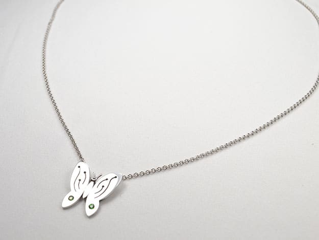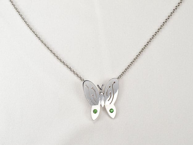 Schmetterlingsanhänger in 585er Weißgold mit Tsavorith