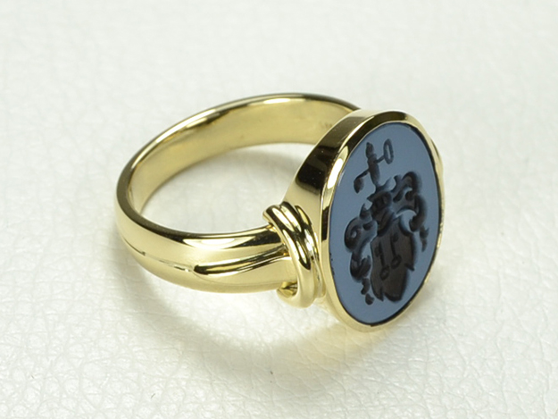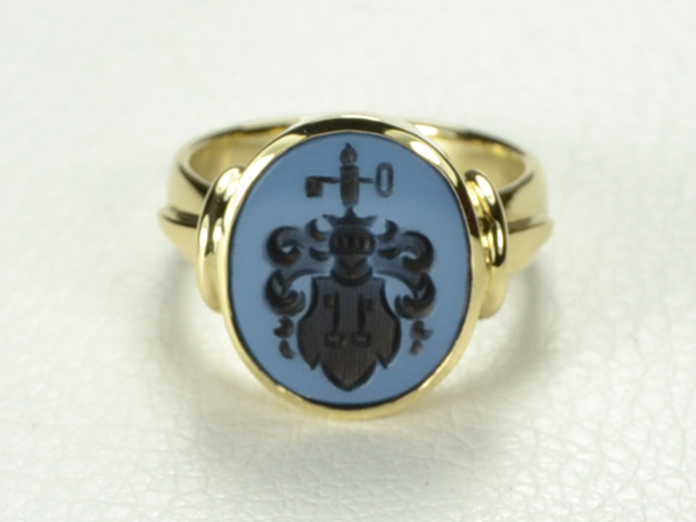 Siegelring in Gelbgold mit graviertem Lagenachat.